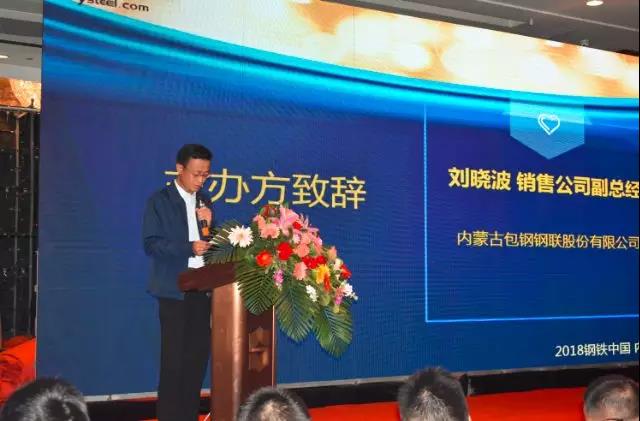 下午14:00會議正式開始,由上海鋼聯(lián)鋼材事業(yè)部北方一部經(jīng)理甘遐勇先生主持。主辦方之一的內(nèi)蒙古包鋼鋼聯(lián)股份有限公司銷售公司副總劉曉波先生致開幕辭。