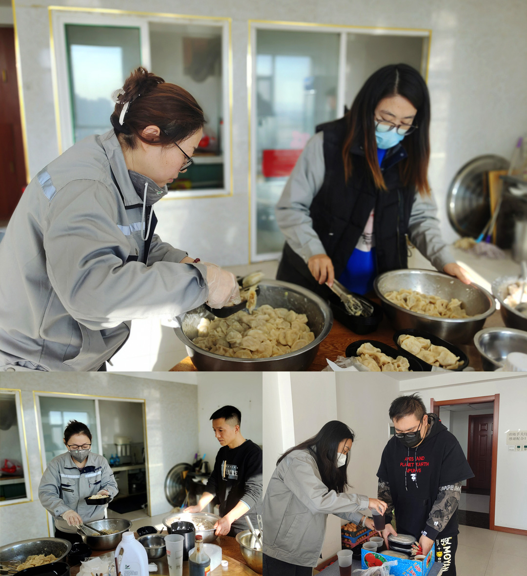 中午12點(diǎn),象征著冬至祝福的水餃滾滾出鍋,大家爭先恐后的分享著戰(zhàn)果和喜悅,空氣中飄蕩著濃濃的幸福和年味。
