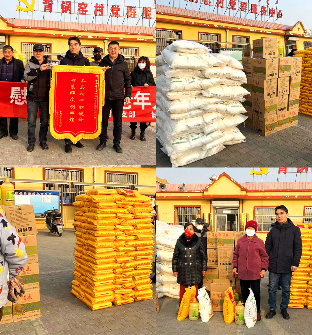 此次活動捐贈的慰問品包含112袋大米、112袋白面和112桶食用油,慰問品由背鍋窯村黨支部在春節(jié)前全部發(fā)放到空巢老人和貧困家庭中。